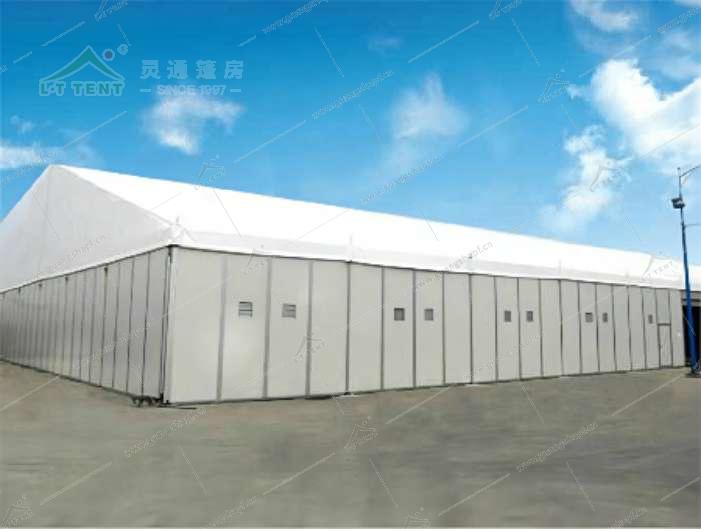 靈通工業(yè)倉儲(chǔ)篷房還可提供窗戶、篷房空調(diào)、排風(fēng)扇、照明燈、排水系統(tǒng)、防撞柱等一站式配套設(shè)施解決方案供客戶選擇,新型裝配式工業(yè)倉儲(chǔ)帳篷注重安全性兼實(shí)用性,能承受多種氣候條件,使用壽命可達(dá)10年以上